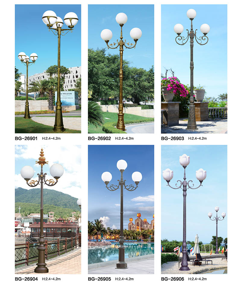 奶白圓球三頭壓鑄鋁庭院燈詳細介紹: