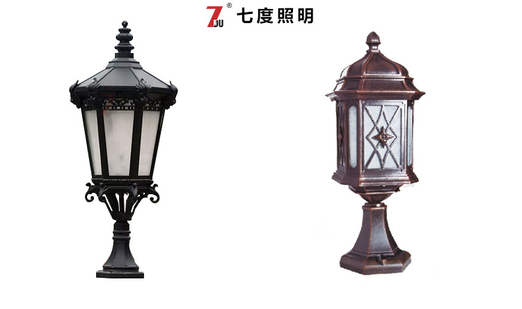 4、歐式柱頭燈歐式柱頭燈由於燈體表麵造型及仿古花紋複雜所以多為模具壓鑄或精鑄成型,表麵可根據需求噴塗顏色或描邊繪圖;